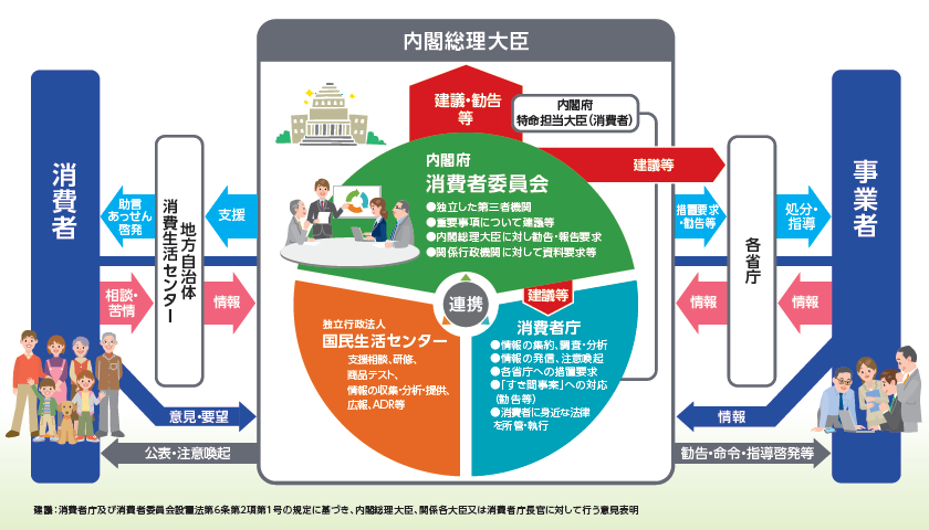 - 各種の消費者問題について、自ら調査・審議を行い、消費者庁を含む関係省庁の消費者行政全般に対して意見表明(建議等)を行います。